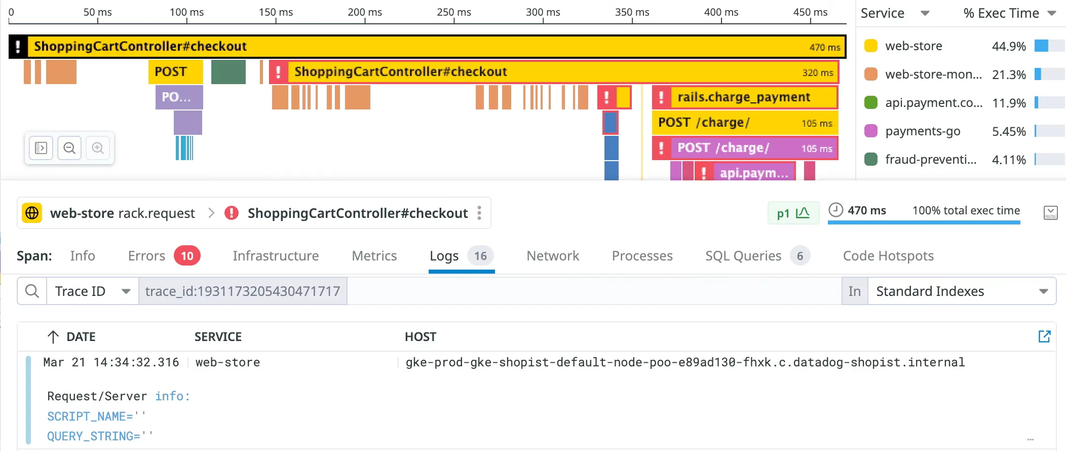 Datadog makes this correlation seamless with its Agent. For developers, correlating APM metrics and spans to logs provides even deeper insights. If a spike in 500 status codes occurs, for example, checking the APM spans can help you understand the impact on dependent services. But don’t forget the logs—they might contain additional context or errors that could be crucial in identifying the root cause.