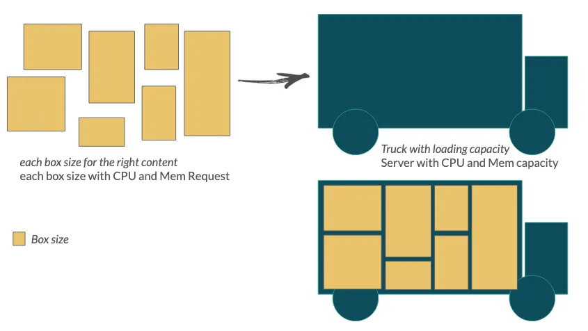 The person loading the truck (in this case, Kubernetes) assumes it’s full because all the boxes are taking up room, even though there’s actually plenty of unused capacity inside.