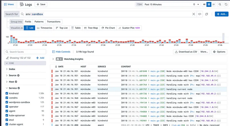Now, let’s add another layer to our WordPress monitoring — the soulful melodies of logs. Brace yourself, because this is the part where simplicity takes center stage. Picture this: a swift change in the config file, a magical application to the operator, and voilà! The operator, like a diligent wizard, works its magic, slowly deploying the new agent config across the entire cluster. The logs will just like that get collected and be available in Datadog.